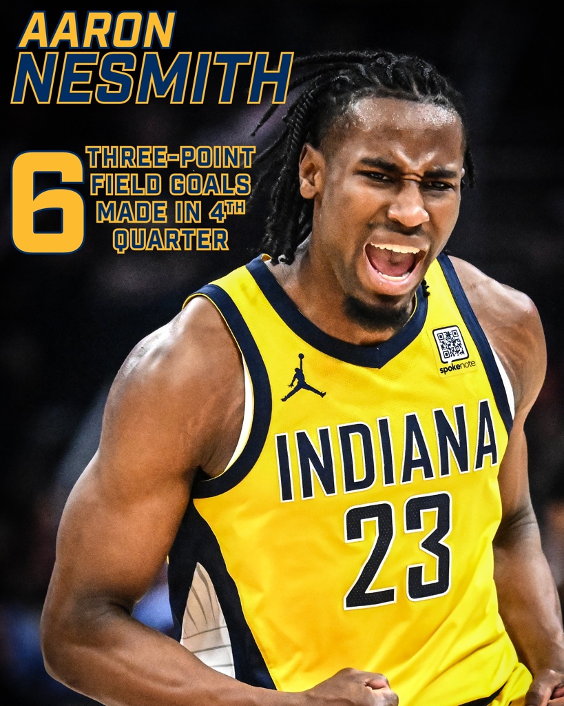 据NBA官方统计,内史密斯是季后赛历史上第一个在第四节单节命中6记三分的球员,此前有6个球员单节命中6记三分,但都不是第四节,分别是: