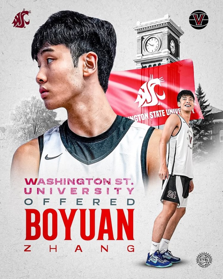 10月10日讯 张博源所在的美国高中Veritas Academy今日官宣,张博源收获NCAAD1级别的华盛顿州立大学的Offer。