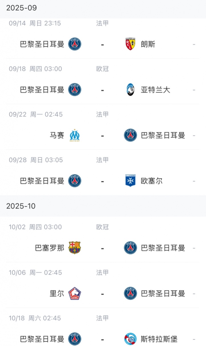 巴黎未来赛程如下,登贝莱无缘出战10月初对阵巴萨的比赛: